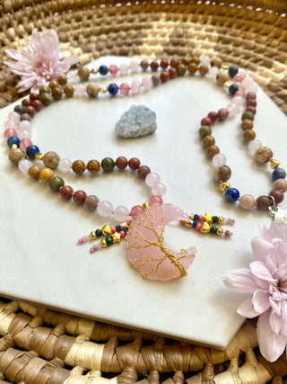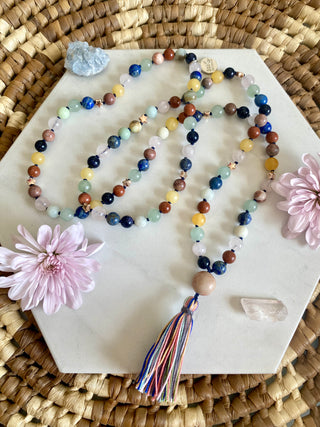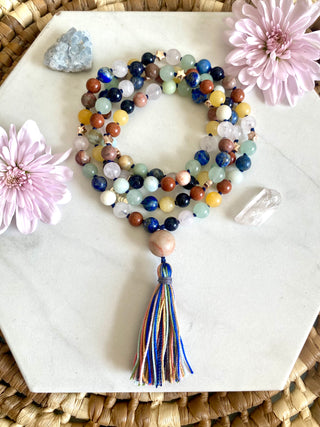 Malas are wearable works of art. Each unique piece is meticulously hand-knotted with 108 gemstones and infused with special intentions.