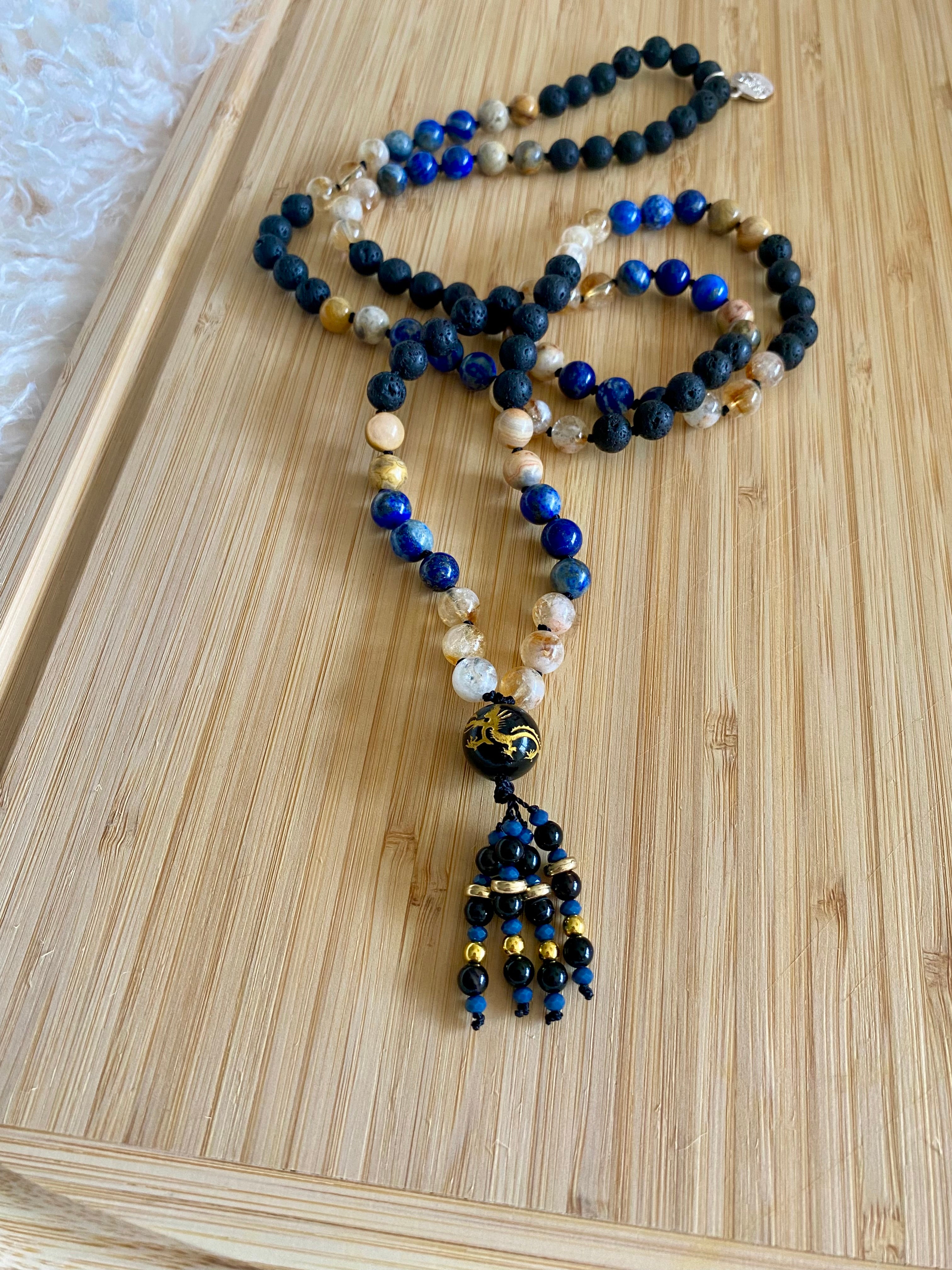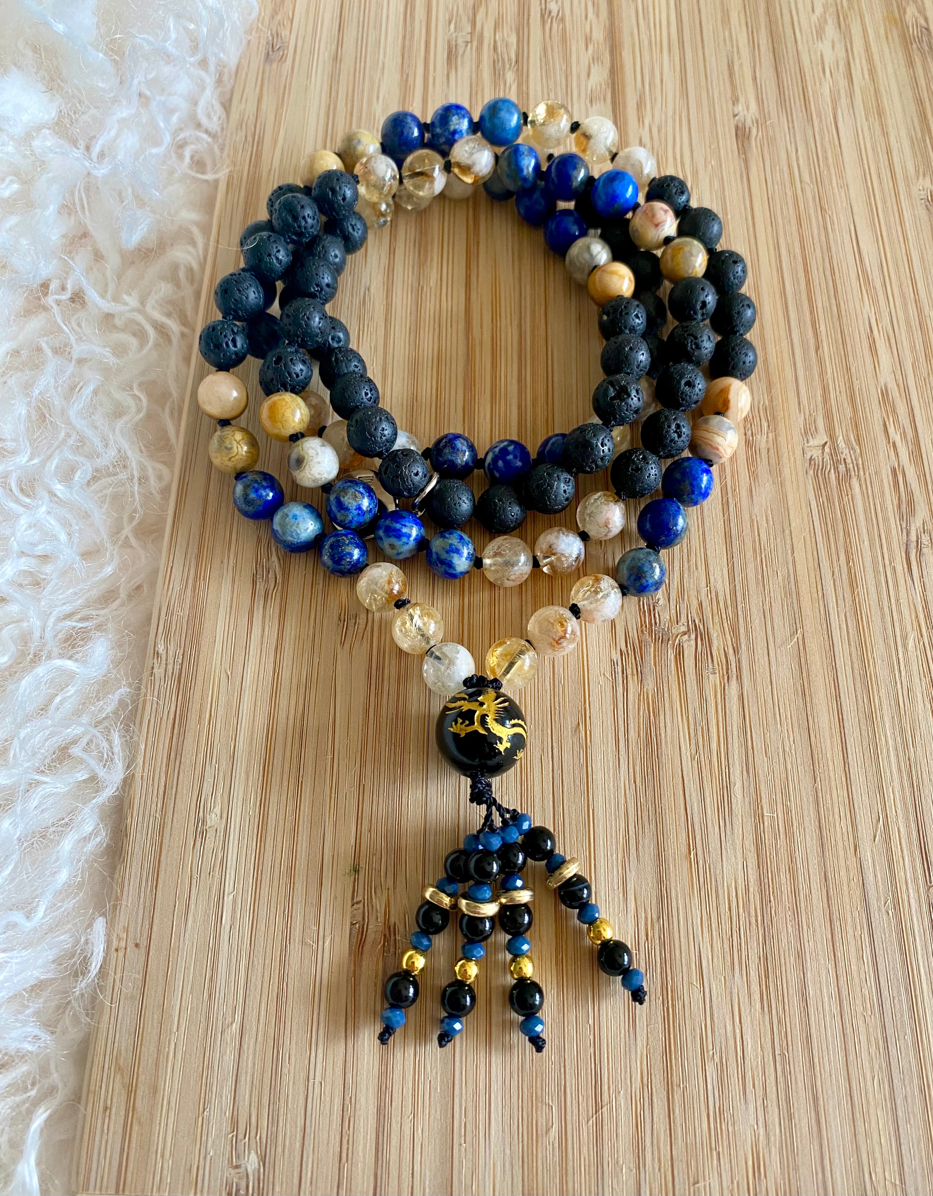 Guided by the energy of the dragon, this Mala carries strength, wisdom, and protection. The stones are intentionally aligned to support grounded action, forward momentum, and belief in the vision you are building.