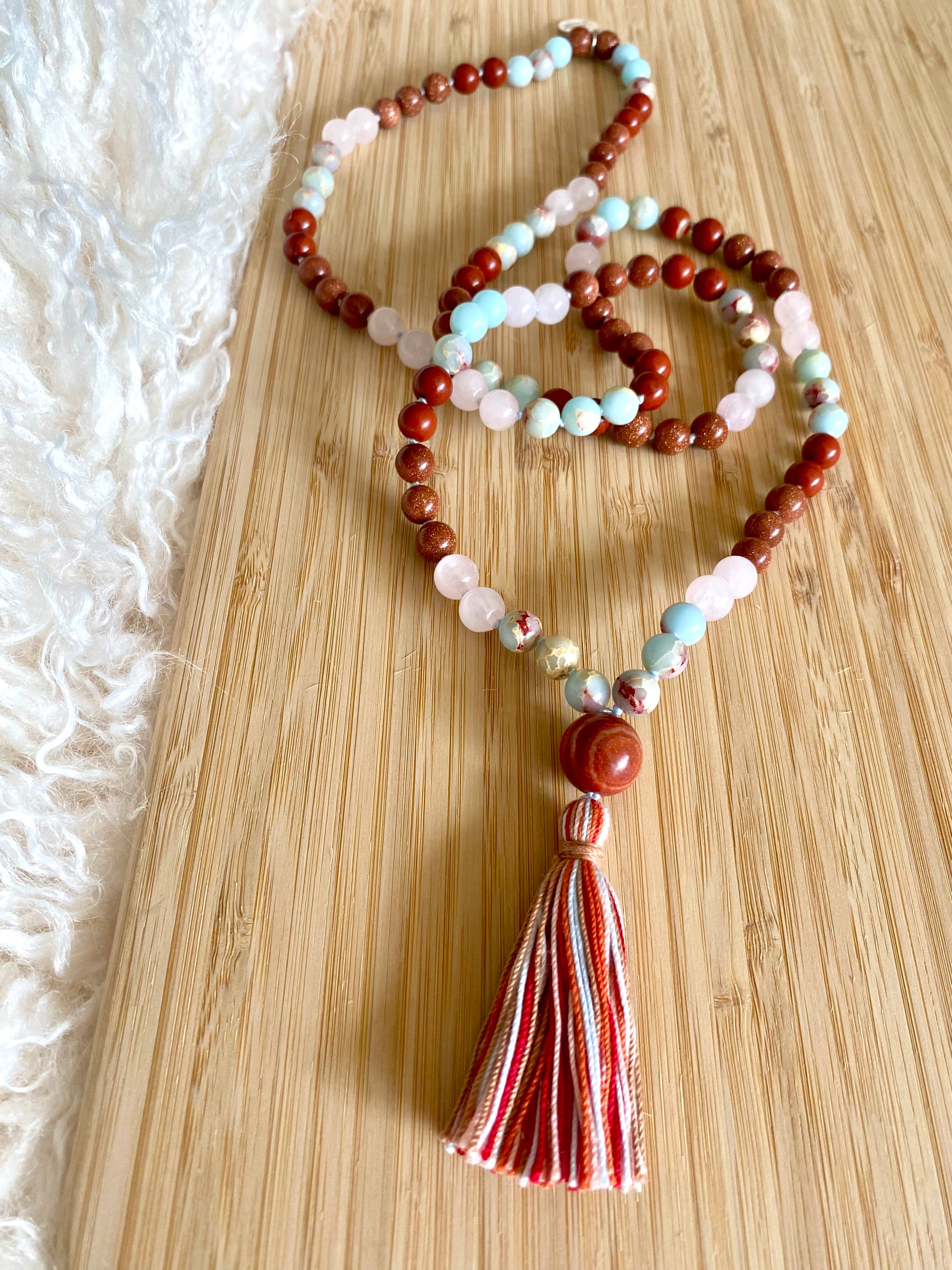 This Mala fuels bold action and ambition. It helps you trust your instincts and step fully into your power. It strengthens clarity, creativity, and the drive to lead with purpose. Every bead is intentionally chosen to amplify your inner fire and guide you toward meaningful impact.