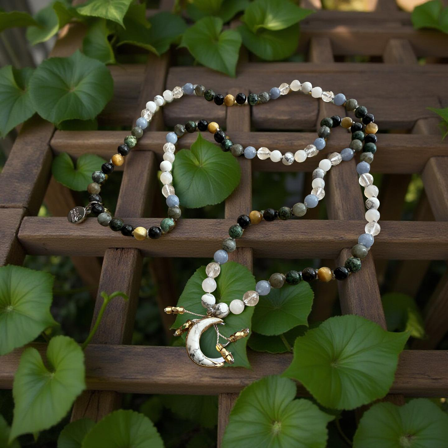 Beneath the stars and moonlit peaks of the San Juans, the Ouray Merman rests in sacred hot springs — the only one who moves through the night. He carries the wisdom and quiet strength of Chief Ouray, whose spirit still flows through these waters. The crescent moon pendant reflects transformation and balance, honoring the cycle of release, renewal, and peace. This mala guides the wearer in endurance, reflection, and the quiet power of transformation.
