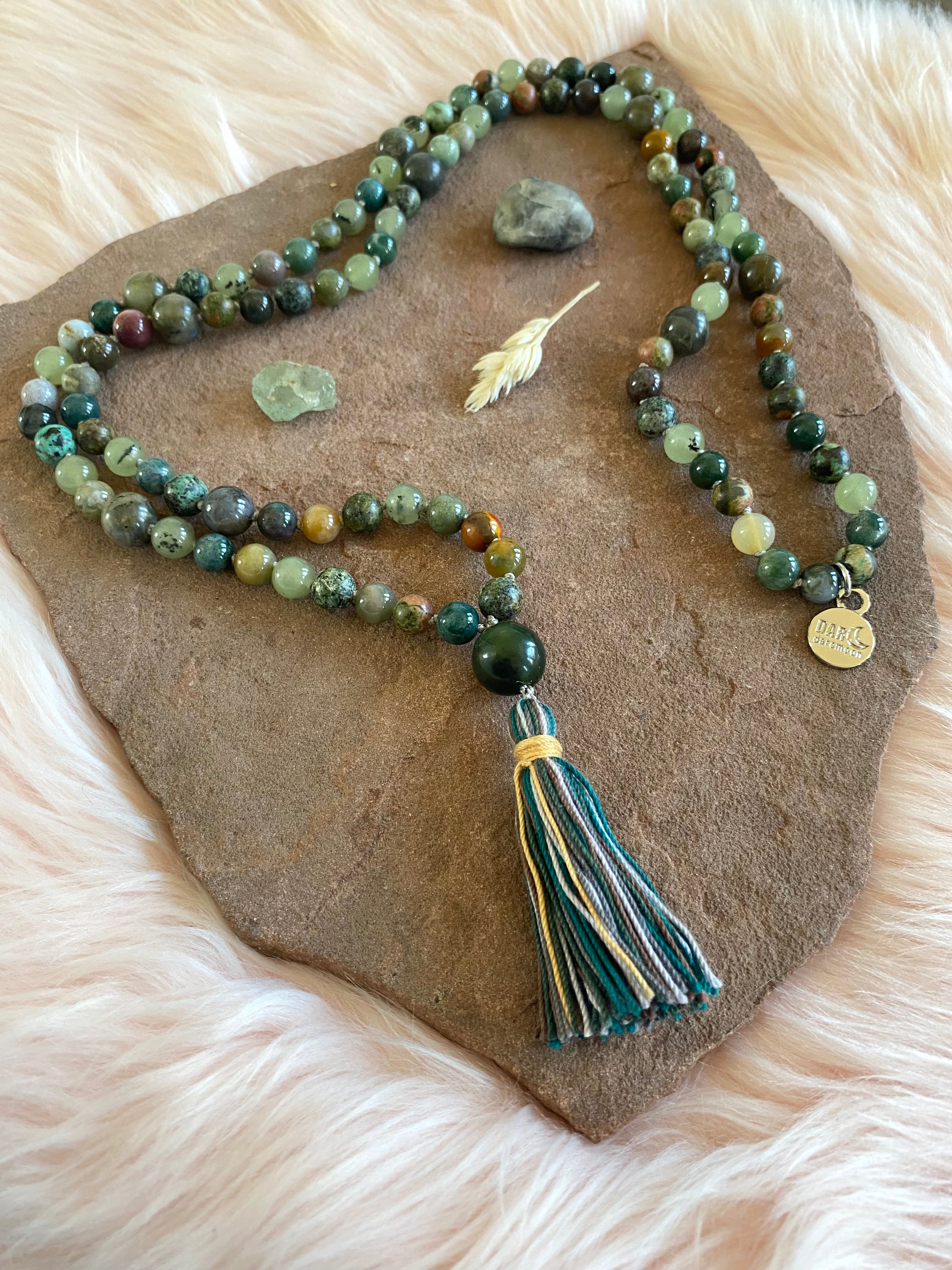 This mala nurtures both heart and higher wisdom. Offering the wearer protection, clarity, and steady guidance as hidden truths unfold and your path forward becomes clear.