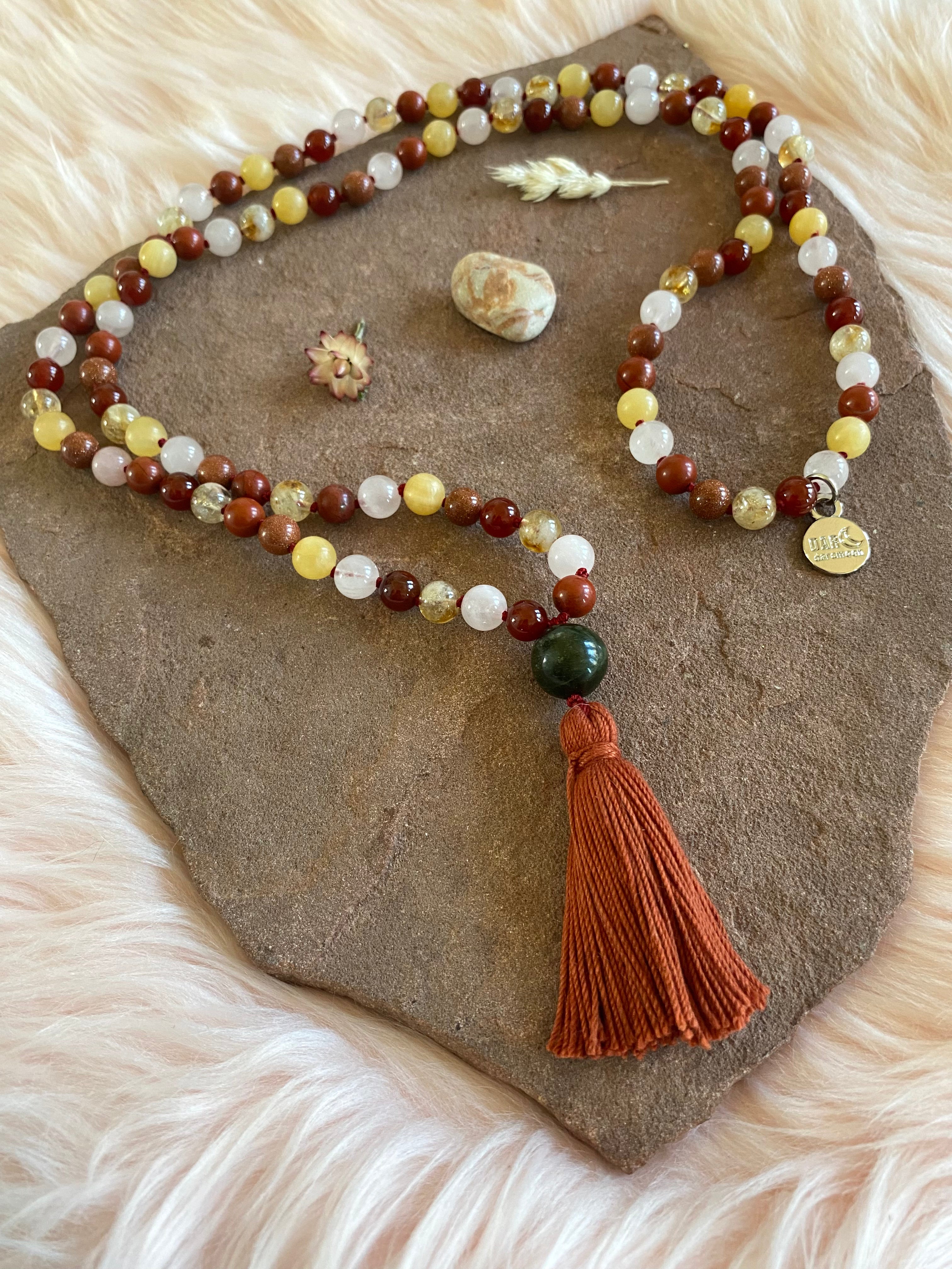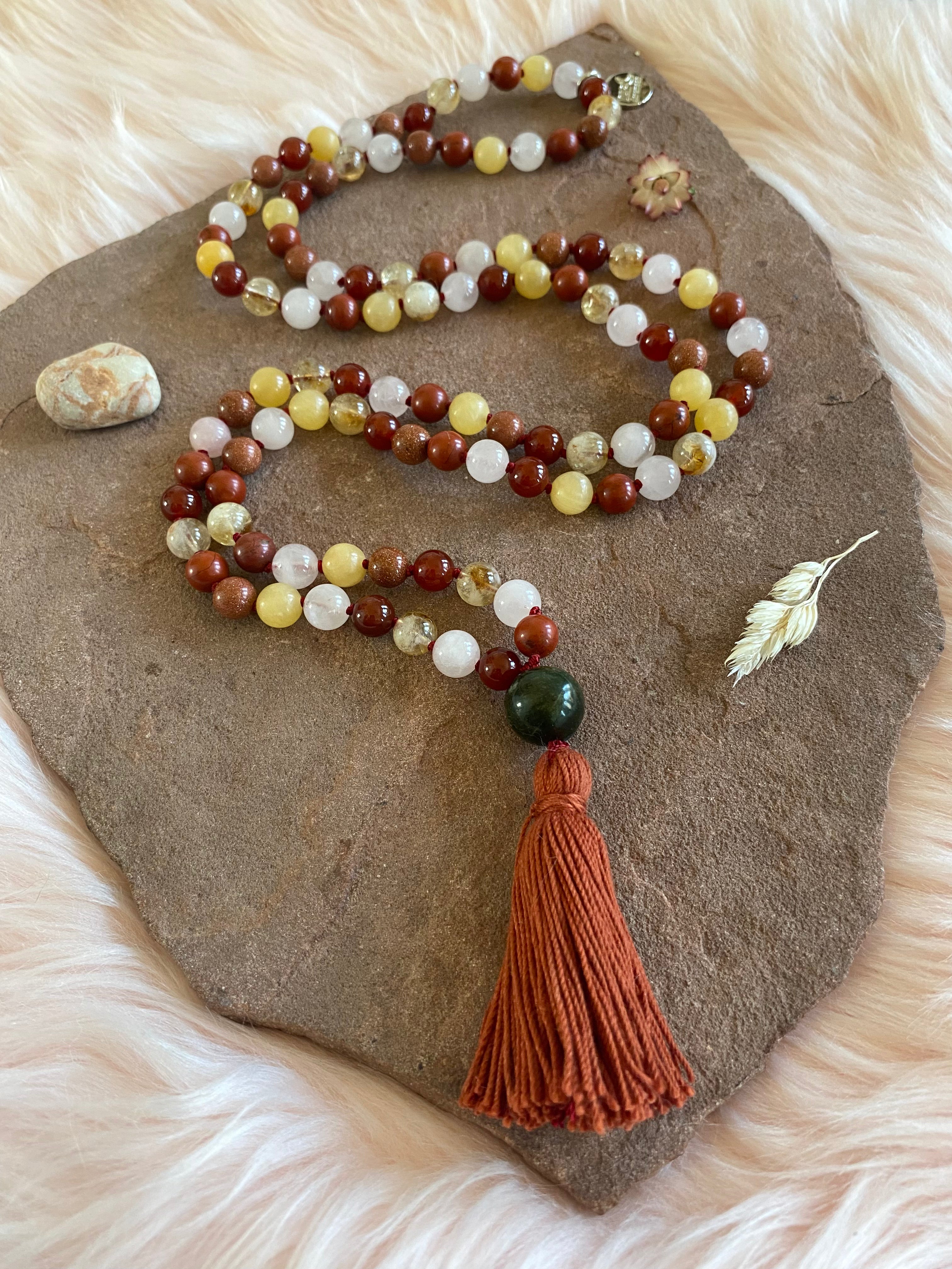 The Sunshine Growth & Abundance Mala Necklace radiates warmth, joy, and gentle encouragement. Its energy supports motivation, confidence, and creativity while helping you feel grounded, balanced, and uplifted throughout the day.