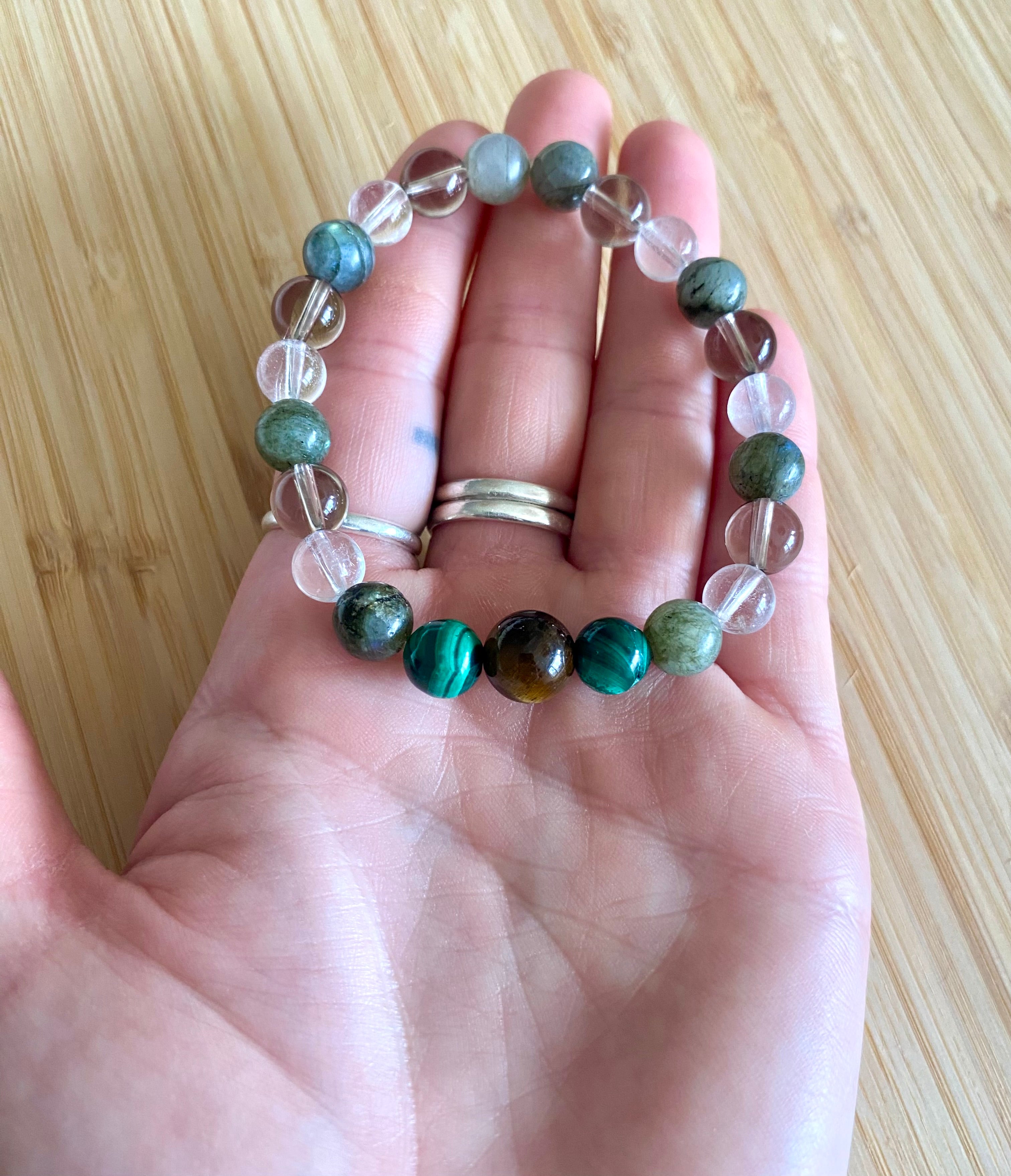 Malachite is known to be a stone of transformation. Malachite encourages change and risk-taking. It assists in making these transformations and eases the transition from one state to the other. Malachite is a great protection stone, absorbing negative energies and pollutants from the atmosphere and the body. It guards against radiation of all kinds, and clears electromagnetic pollution.