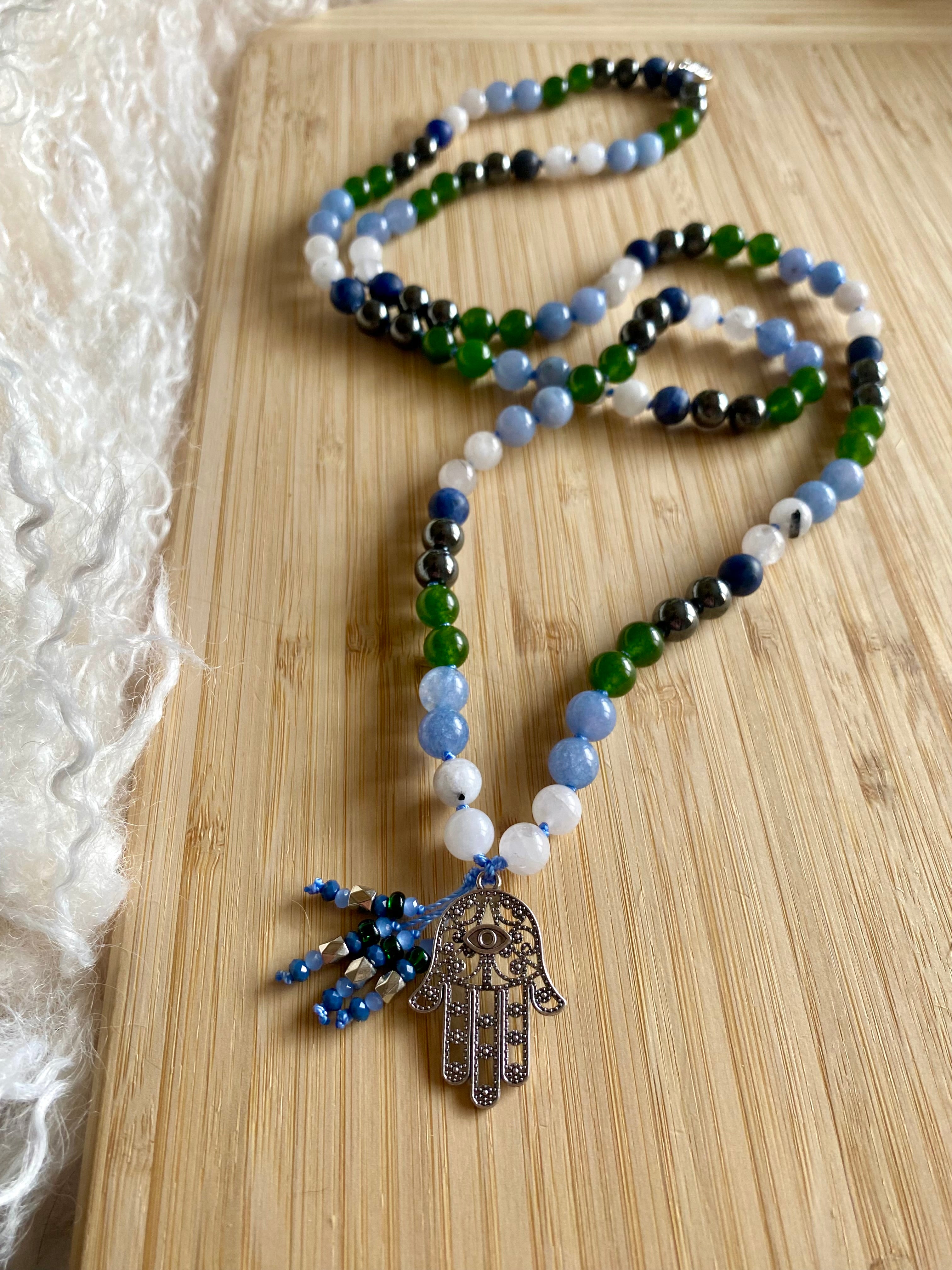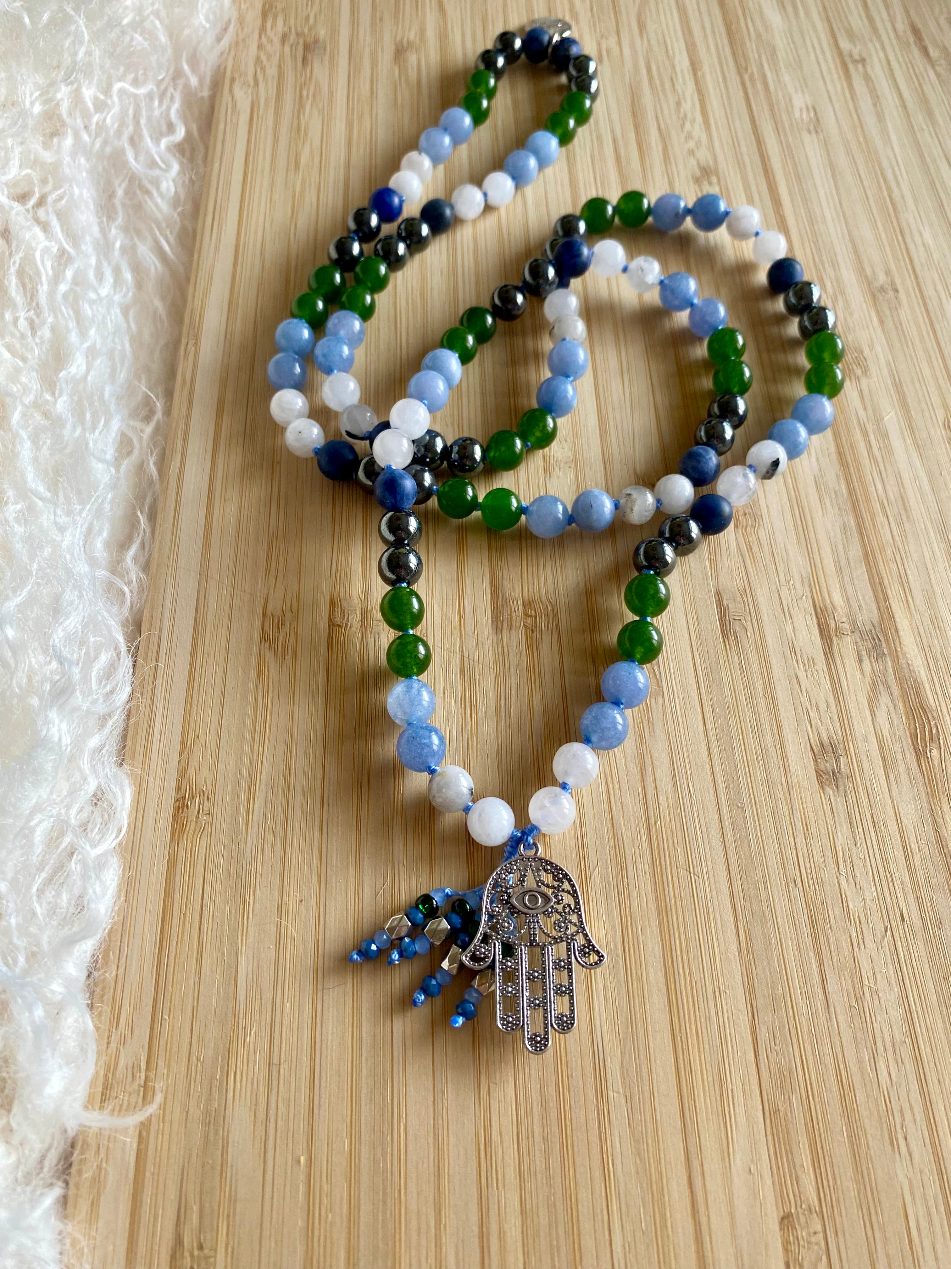 The Hamsa symbolizes protection, power, and strength. This Mala is a daily reminder of your resilience, courage, and all you are capable of to thrive.