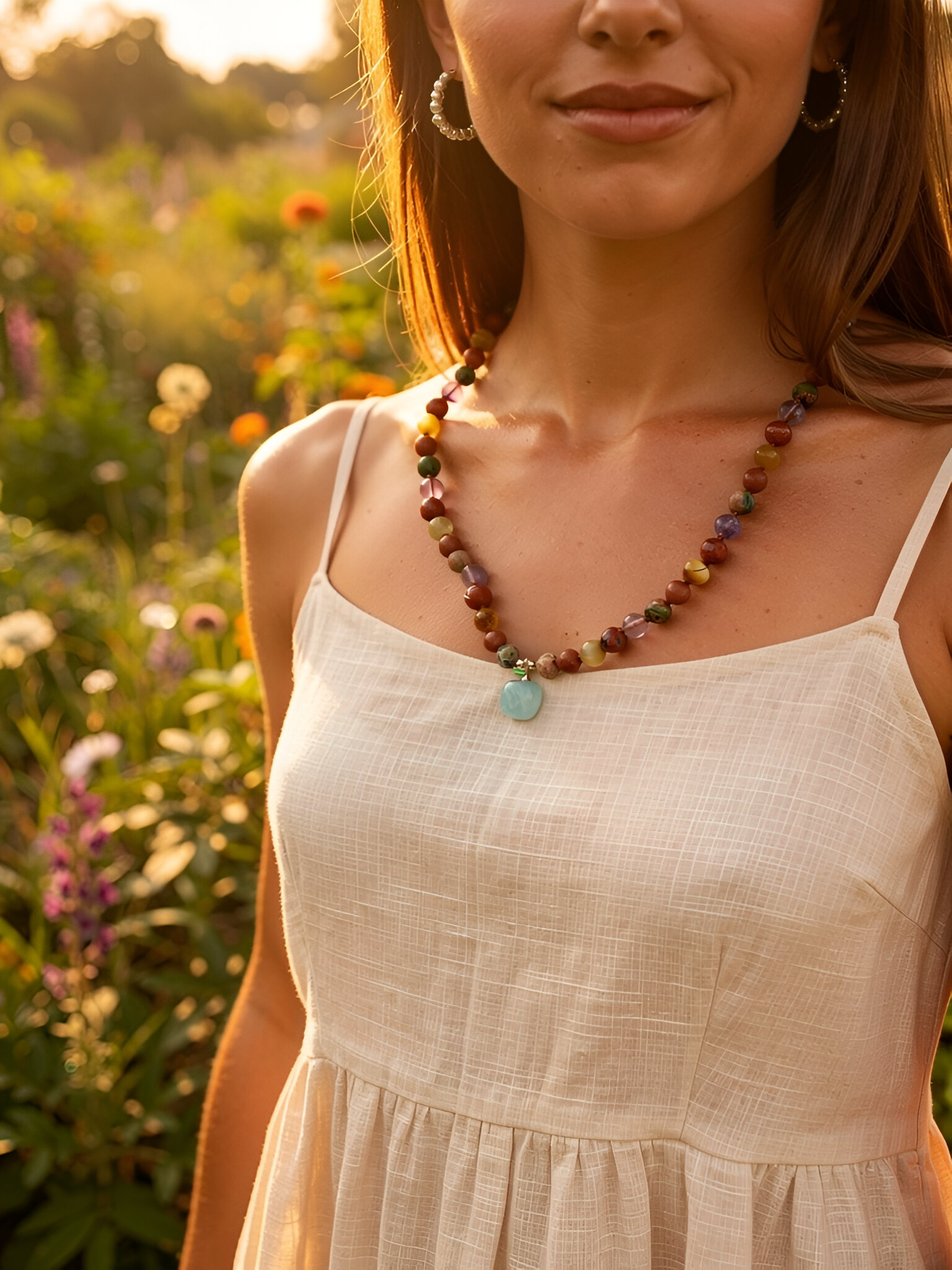 Each stone in the Cedaredge Mermaid Necklace reflects the valley’s quiet strength—its shifting seasons, soft stillness, and the gentle abundance found beneath the Grand Mesa.