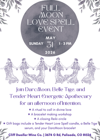 Investment: $76The Full Moon Love Spell Event is an afternoon to celebrate divine love, friendship, and ritual. Join DarcMoon, Belle Tige, and Tender Heart Energetic Apothecary for a beautiful gathering to create, connect and honor love together during the Full Moon 💗